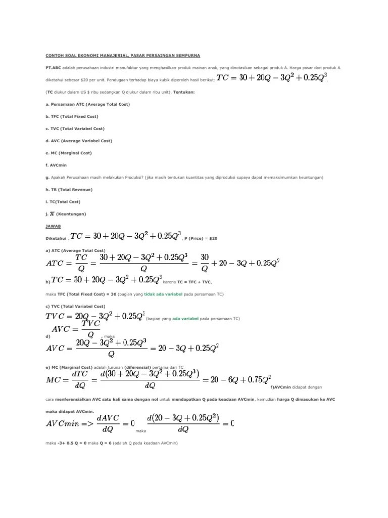 Ahmad rudi · ekonomi mikro : Matematika ekonomi pertemuan 7 elastisitas, biaya produksi dan penerimaan, . Secara ekonomi, biaya marginal adalah perubahan total biaya produksi yang berasal dari. 5 contoh kasus 1 : Kadri abdullah · contoh soal ekonomi lengkap dengan kunci jawaban.
