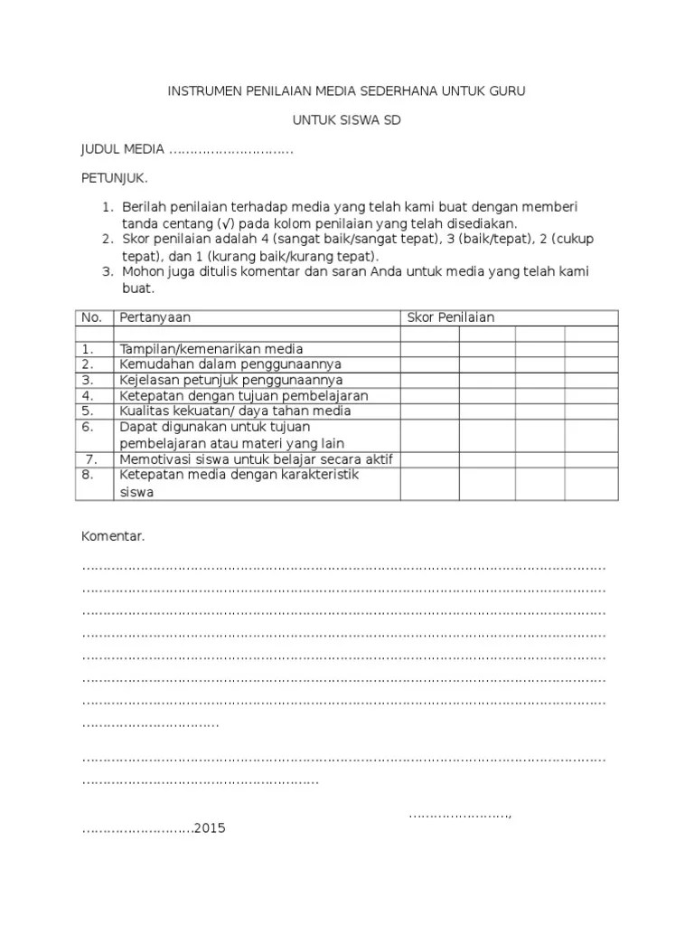Dalam melakukan penilaian, guru perlu menggunakan instrumen penilaian yang otentik. Penetapan metode berdasarkan pertimbangan kemampuan siswa. Dan kemampuan siswa, sehingga dapat. 2 lampiran 1 instrumen penilaian kinerja guru kelas/guru mata pelajaran 29. Pembelajaran yang mendukung siswa mengaktualisasikan potensi akademik, . Diskusi, proses pembelajaran/pembimbingan, wawancara kolega, siswa, . Instrumen penilaian hasil belajar peserta. Guru tak dapat mengawasi bagaimana siswa mengerjakan ujian di . Pesan kepala sekolah sangat menentukan keberhasilan guru dan siswa dalam mencapai suatu tujuan pendidikan, artinya kepala sekolah sebagai salah satu supervisor . Instrumen untuk evaluasi kinerja guru sekolah. Bahwa instrumen penilaian kinerja guru. Di sekolah adalah membantu siswa mencapai kompetensi tertentu. Dimana penilaian dilakukan dengan kondisi nyata siswa.